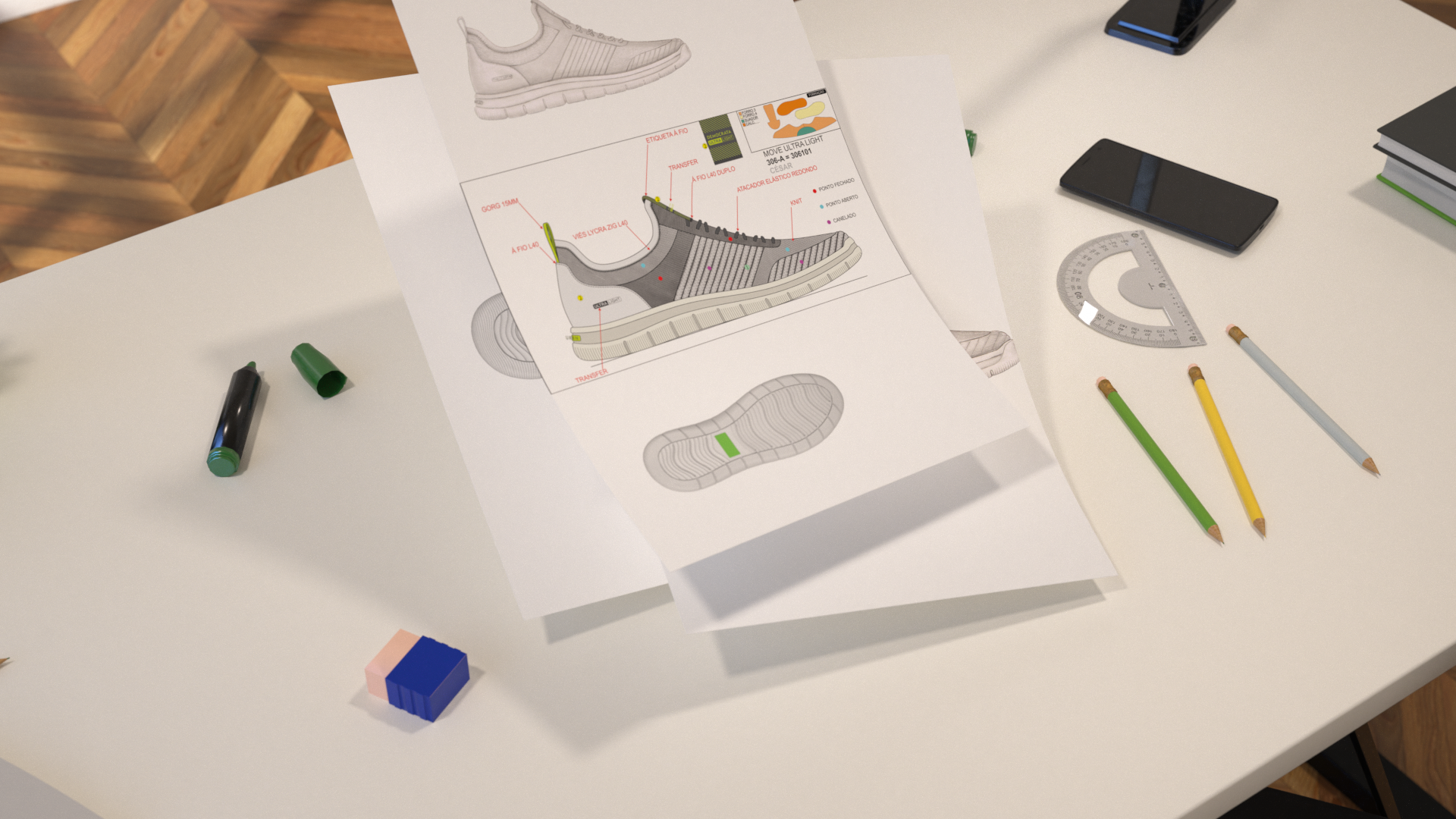 3D shoes modelling and texturing: Otávio Silveira